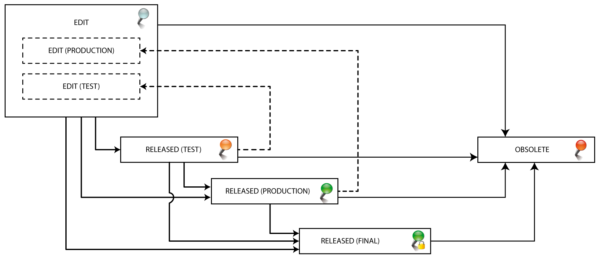 • OBSOLETE (5), this status is irrevocable. An obsolete version can be copied to create a new editable version based on the obsolete version.