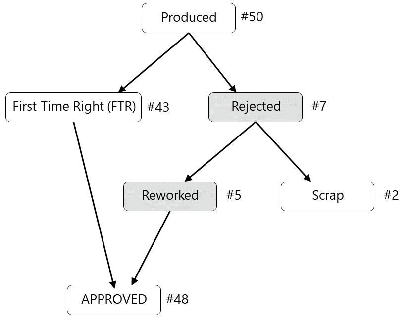 Example: Out of the 7 rejected items, 5 can be reworked into items complying with the quality requirements.