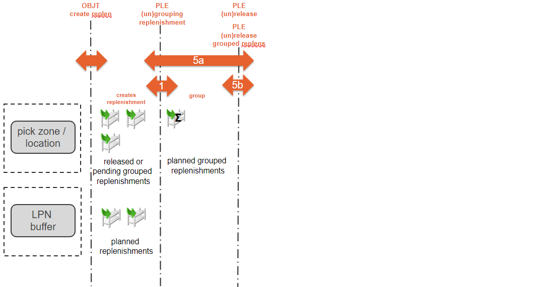 5a. Pick and crossdock lists and replenishment tasks are released at the right time. The replenish tasks for LPN buffer are grouped into a replenish list in the background. PLE can unrelease pick, crossdock and replenishment lists under certain circumstances.​