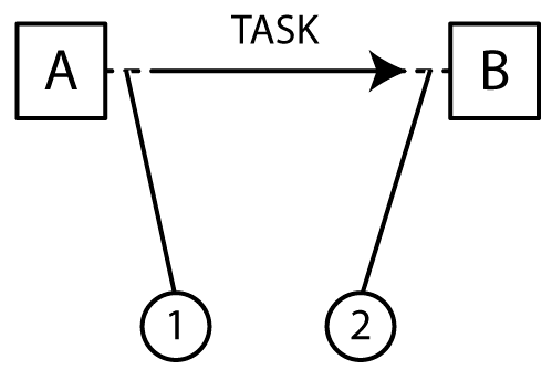 If a task to bring goods from location A to location B cannot be executed at the source (1), an allocation override reason must be entered. If a task cannot be executed at the target (2), a location override reason must be entered. If a task cannot be executed by the system, an error reason will be generated. If a task is interrupted by the system, a hold reason will be generated. If the task is terminated by the supervisor or the operator, a terminate reason must be entered.