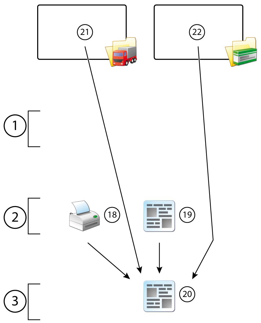 In advance, configure the customers, suppliers and/or carriers (21) (if module(s) Inbound Management and/or Outbound Management is available and the Items (22).